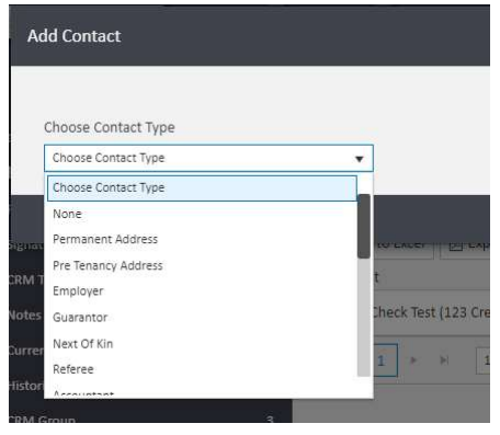 A pop-up window will appear with a Choose Contact Type dropdown. Select the appropriate type from the list: