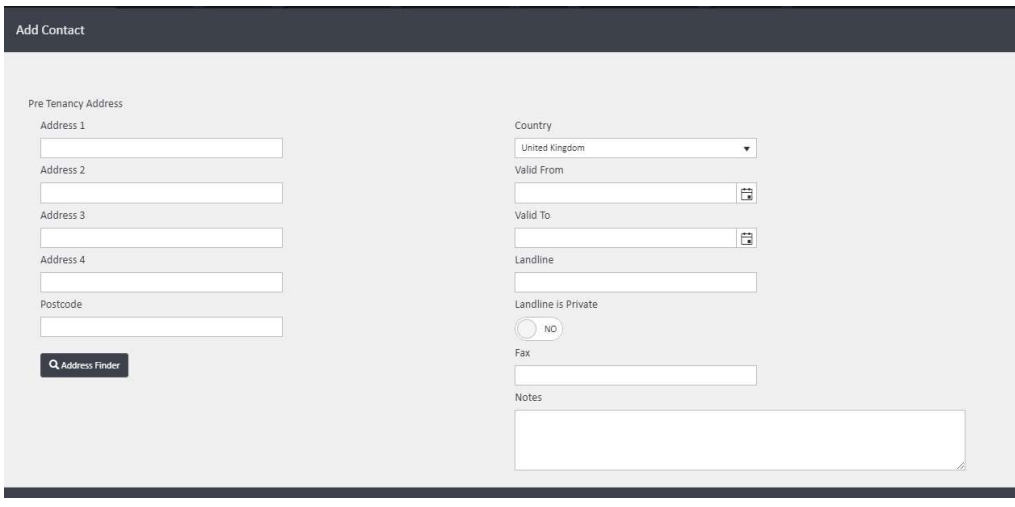 ⚠️ Please note: For contact types such as pre-tenancy, post-tenancy, or permanent addresses, personal details such as name, email, and phone number are not required.