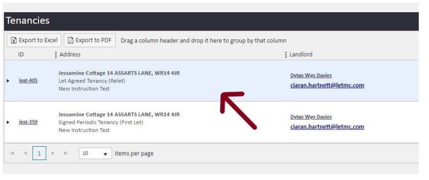 On the property record, click Tenancies in the left-hand navigation ladder. Select the relevant tenancy from the list.