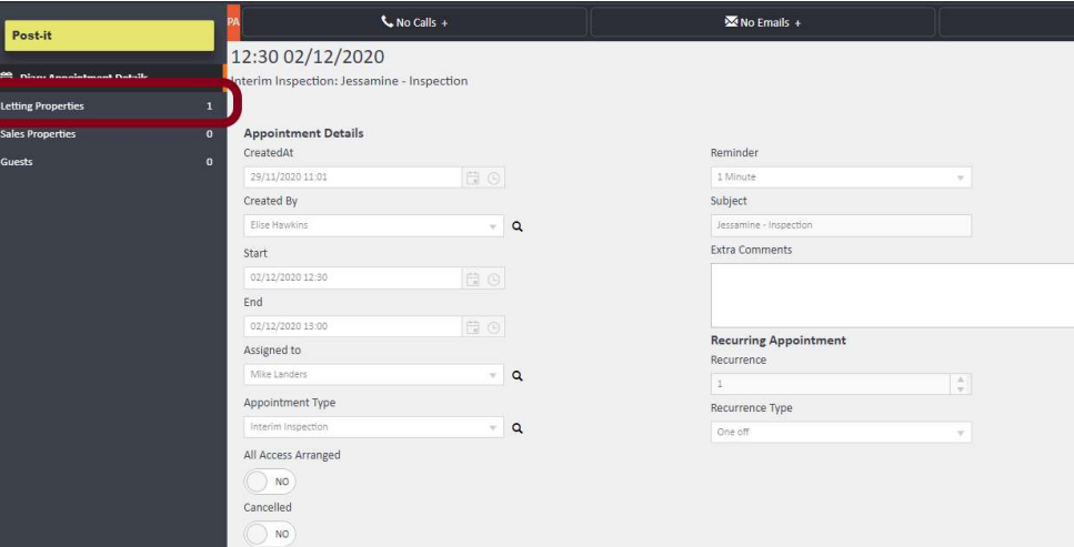Select the correct property from the list and click Add to link it to the appointment.