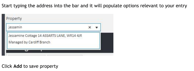Click on the relevant section — for example, "Lettings Properties" — then start typing the property address into the search bar.