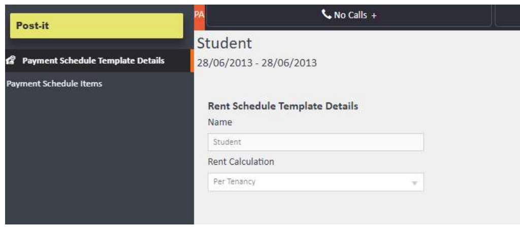 Navigate to the relevant tenancy and click Payment Schedule in the left-hand navigation ladder. Then click Setup From Template.