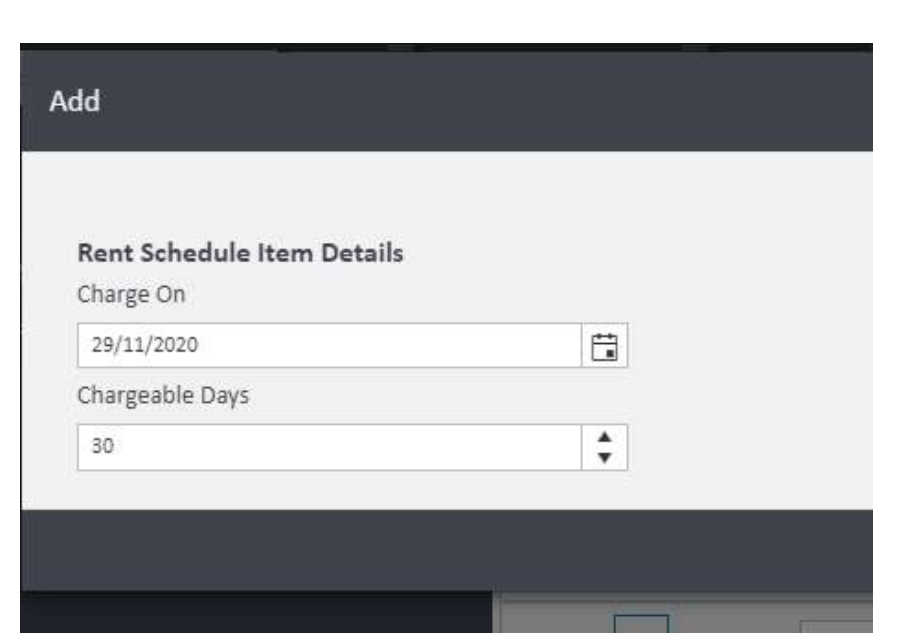 Payment schedule templates let you save a custom rent schedule — with specific charge dates and chargeable days — so it can be quickly applied to any tenancy. Create the template in Object Types > Payment Schedule Templates, then apply it via the tenancy's Payment Schedule section using Setup From Template.