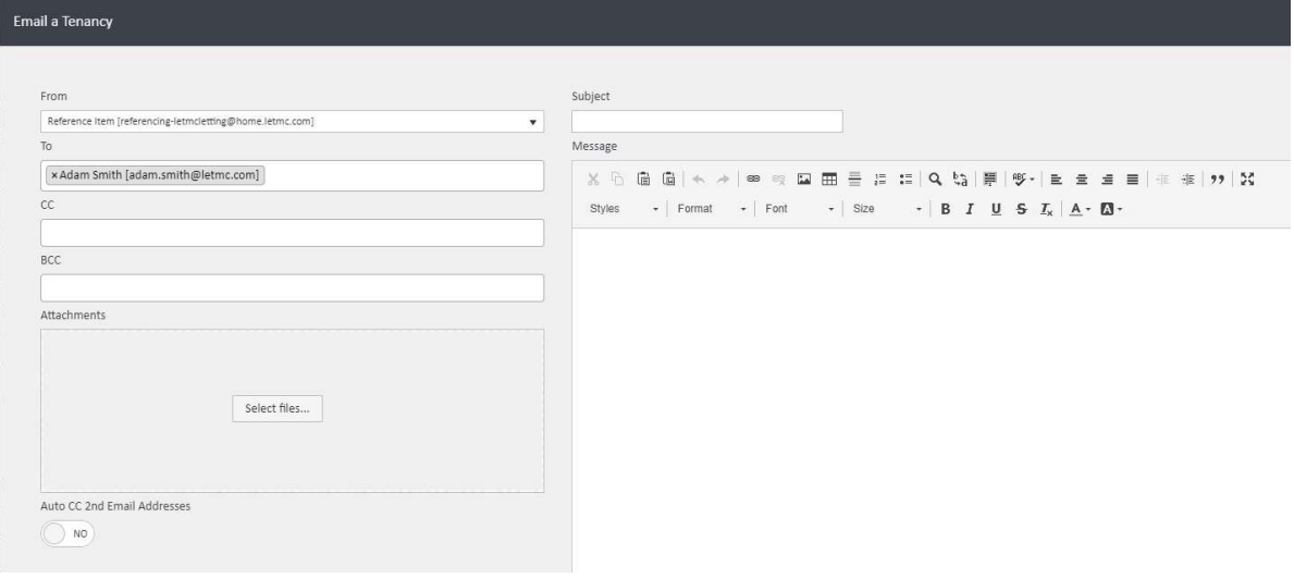 Once you have completed all relevant fields, click Email a Tenancy in the bottom right corner of the window to send.