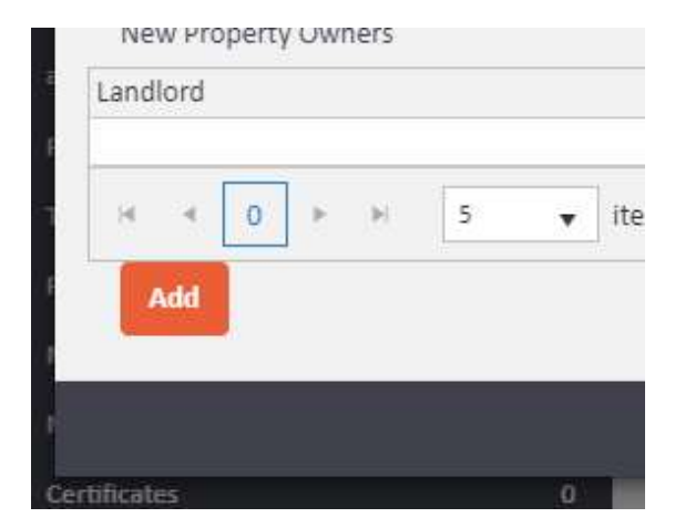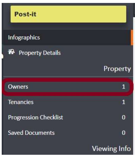Click on Owners. This will take you to the Owners screen. If any landlords have previously been linked to this property, a history of all applied owners will be displayed in the centre of the page for your audit reference.