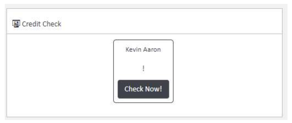 To run a new credit check, click the Credit Check widget within the applicant or tenant record. If no check has been carried out, the widget will show a Check Now! button.