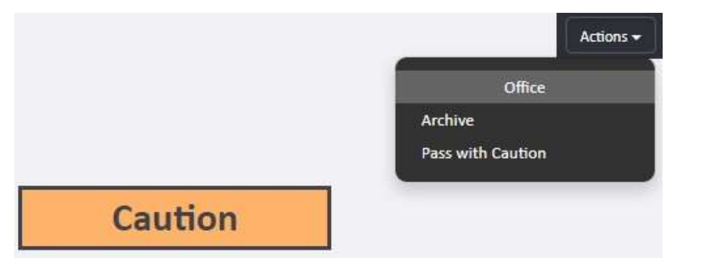 If a Caution result is returned and you decide to proceed, you can override it to a Pass with Caution status. To do this, go to the Actions menu on the credit check results page and select Pass with Caution.