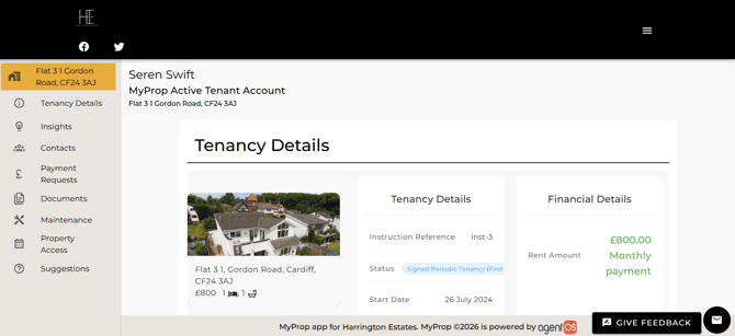 Tenants access tenancy information, report maintenance, and make rent payments