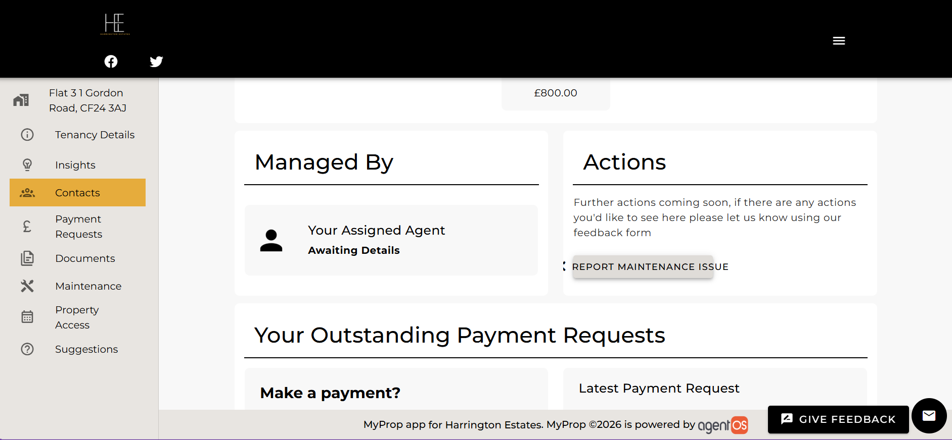 We can configure MyProp app to replace the standard "report a maintenance issue" button with a direct link to your preferred system's URL. When tenants click to report maintenance, they're taken directly to your chosen platform rather than the standard agentOS maintenance reporting interface.